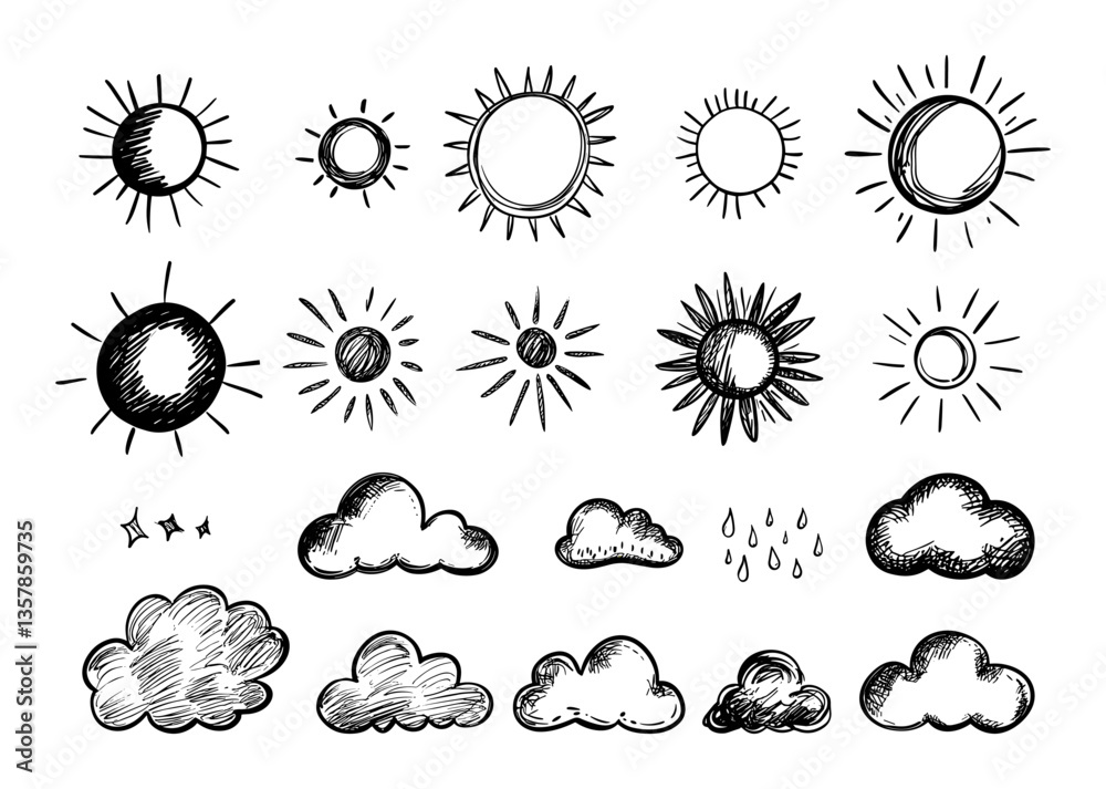 Pacote de símbolo de escova meteorológica desenhado à mão